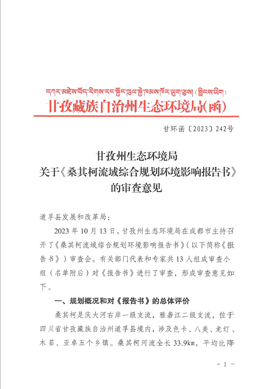 我公司為項目業主完成了流域規劃及規劃環評,確保了流域內的省級重點項目——道孚抽水蓄能電站的環評及整個項目的正常推進。
