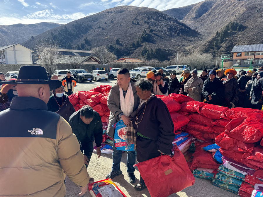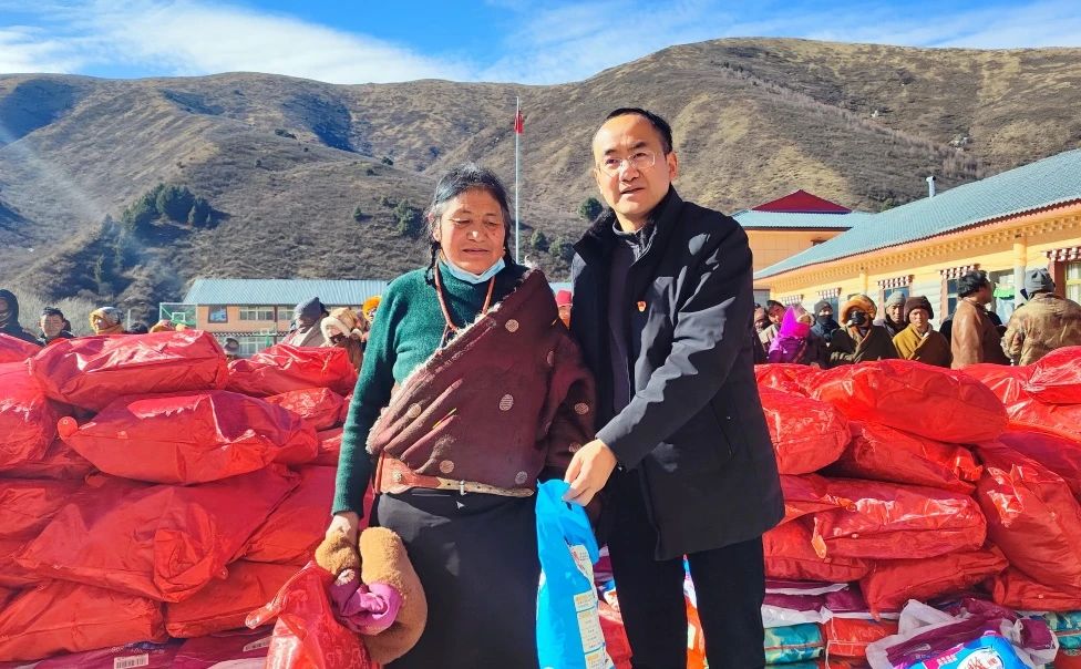 同時(shí)通過色達(dá)縣水利局向桑桑、德瑪、查啟三村“民族團(tuán)結(jié)進(jìn)家庭”96戶牧戶及脫貧戶60戶,共計(jì)156戶家庭捐贈(zèng)生活物資(包含毛毯、大米、洗衣粉)各一套。
