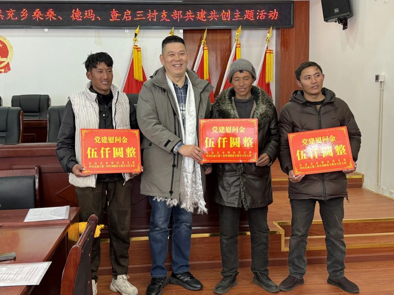 會(huì)后,弘誠(chéng)天毅黨支部向桑桑、德瑪、查啟三村黨支部捐贈(zèng)慰問金各5000.00元,共計(jì)15000.00元。